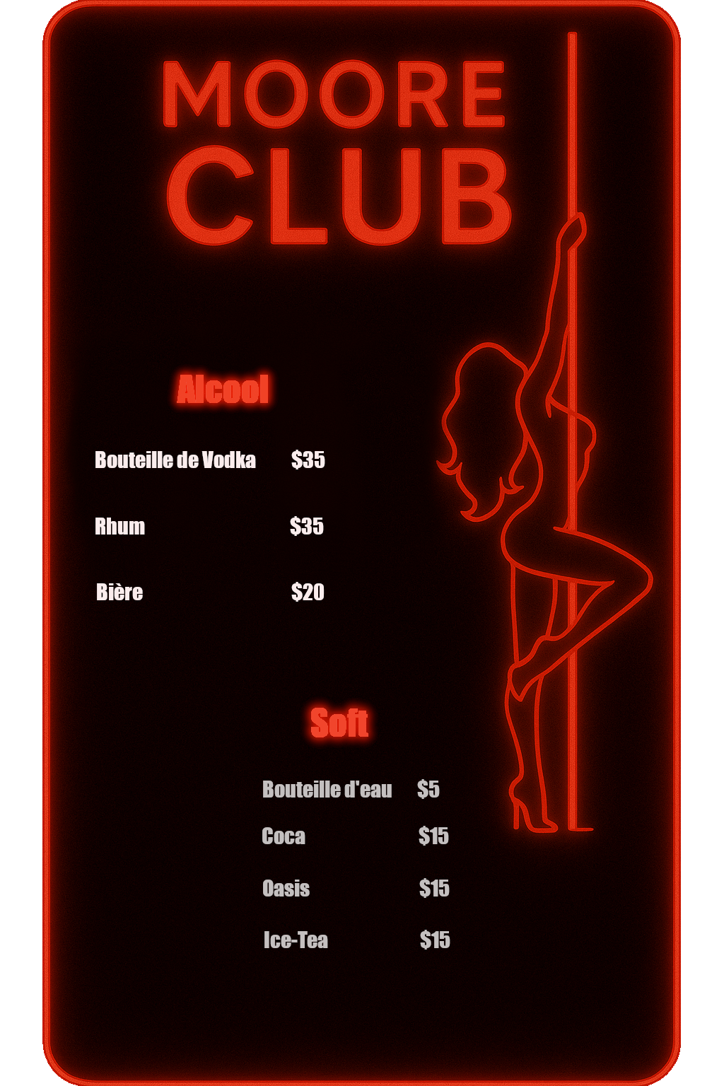 Détails de notre carteAlcool: ⬝ Bouteille de vodka [Spécialité] $35